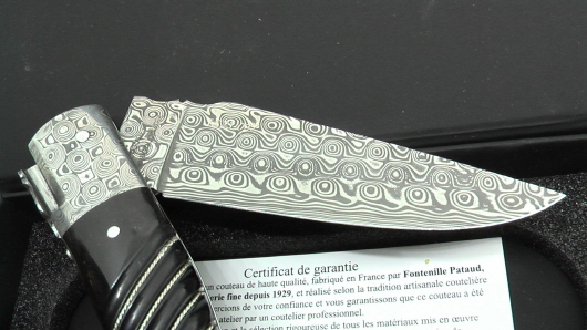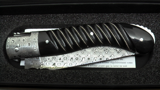 The Damascus steel we¡¯re using is from Damasteel¢ç and the patterns will last the life of the knife. The Damascus Sport Laguiole knife is a premium choice for connoisseurs.